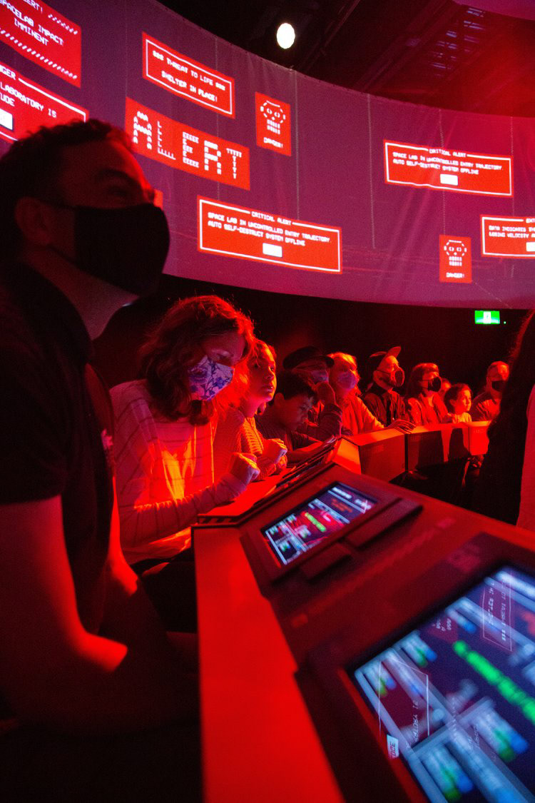 Destination Mars uses Unreal Engine to power a system of networked tablets and interactive projections. Players feel they are in control of the projections and actors have real time data analytics to guide the performance as well as Qlab control for extra gaming options, audio and lighting.