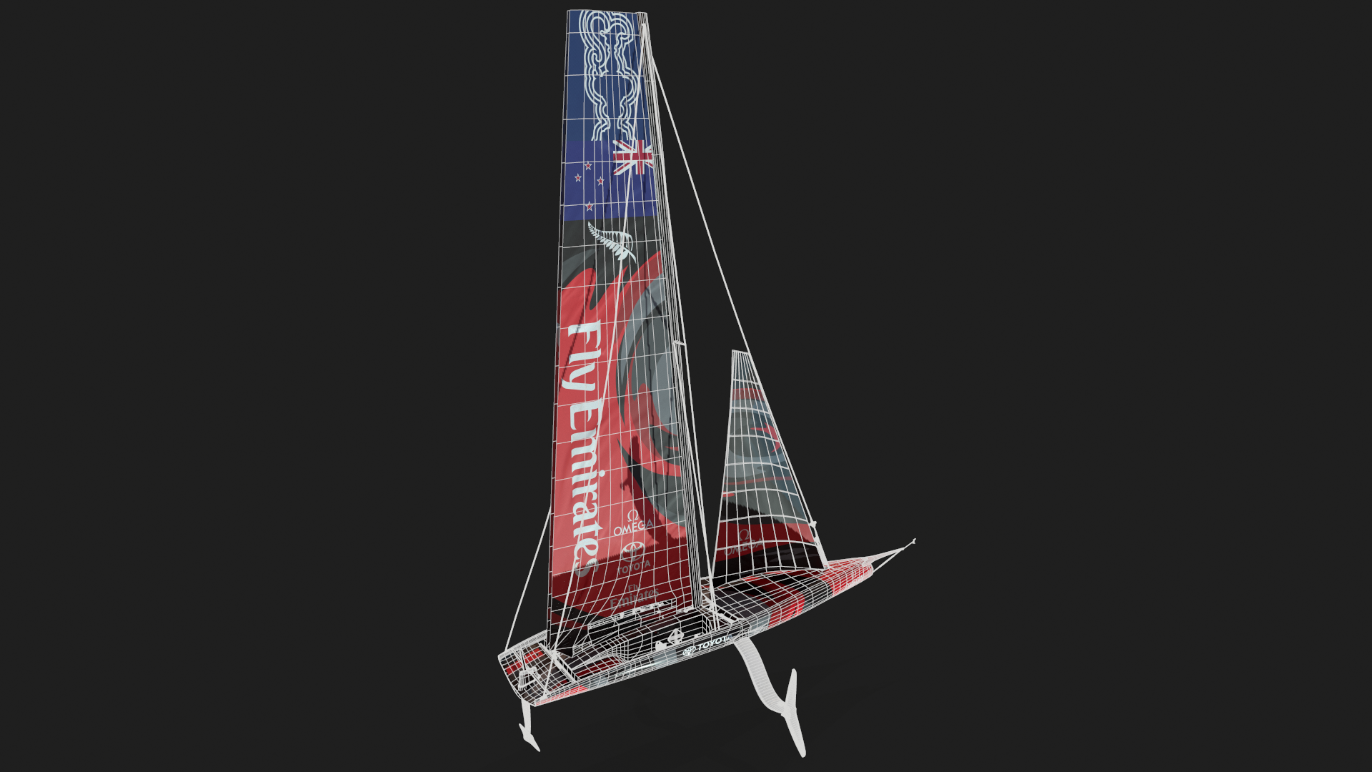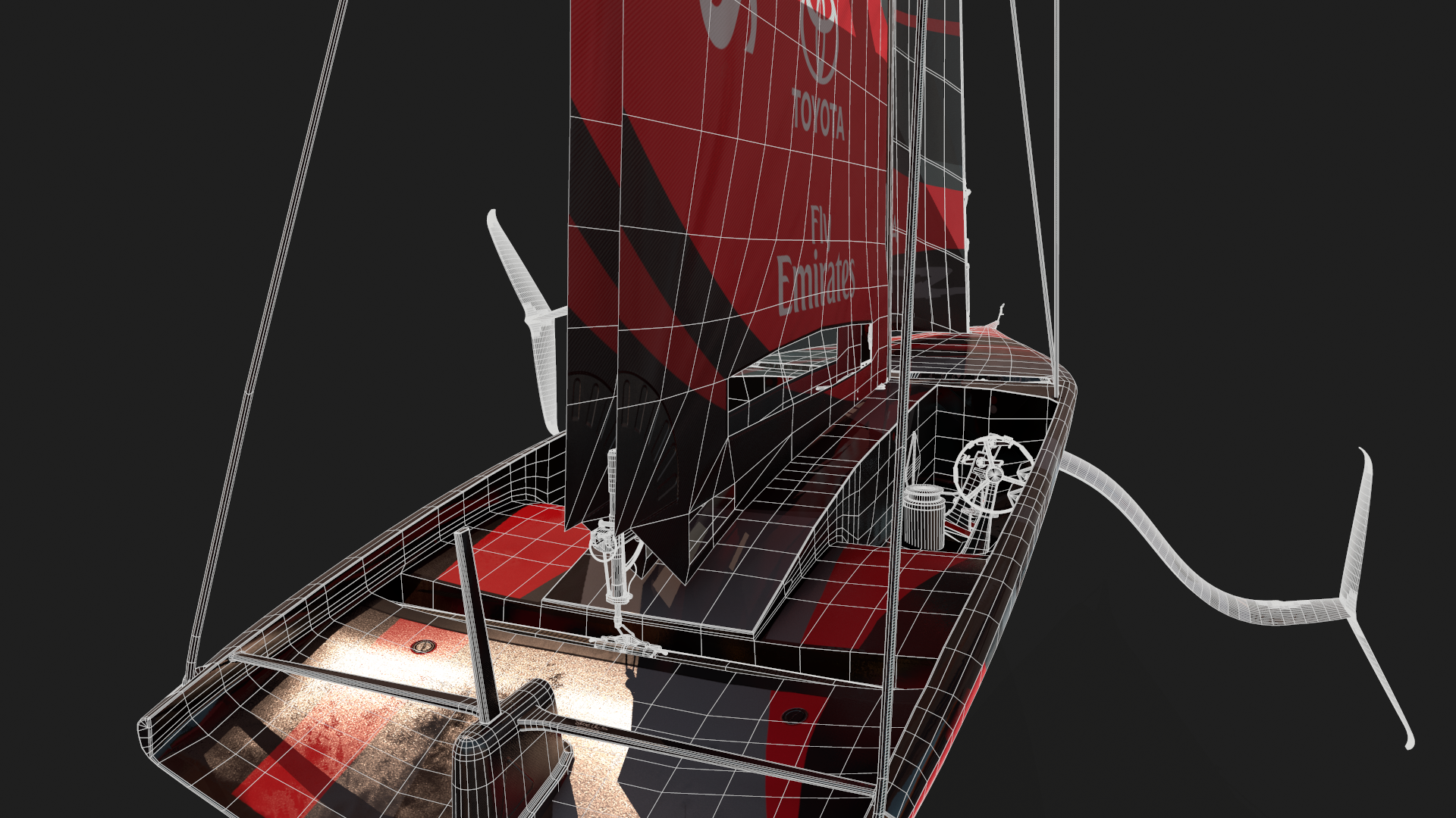 During my Internship on Emirates Team New Zealand I was asked to work on the AC75 model for their simulator. The plan was as I was making the model to define a workflow of modelling, animating, rendering that would work simultaneously for two different engines.